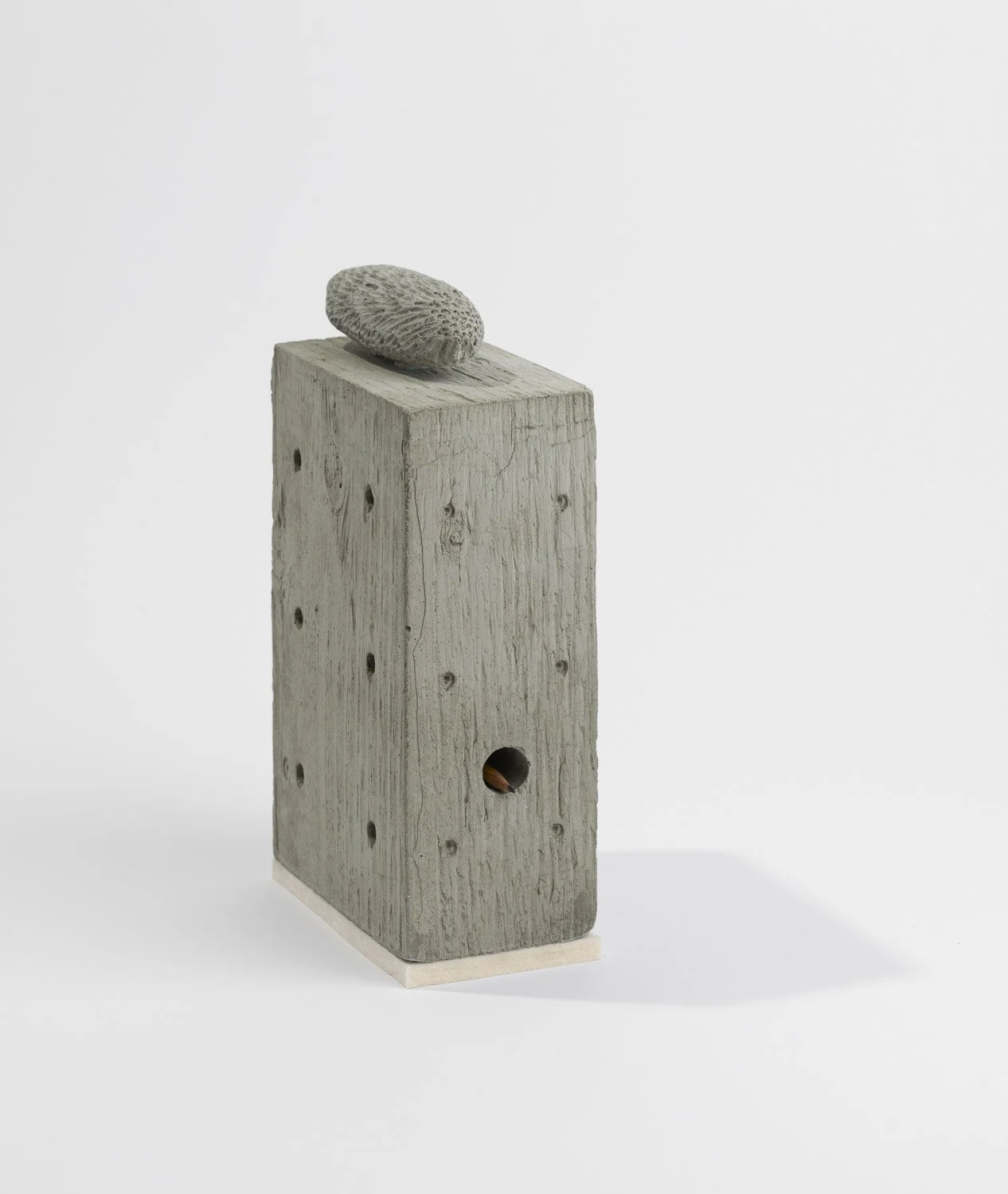 Crushed sea shells, seawater, lime, silica and alumina cement, granulated quartz, cat hair, volcanic ash, saliva, felt, pencils.